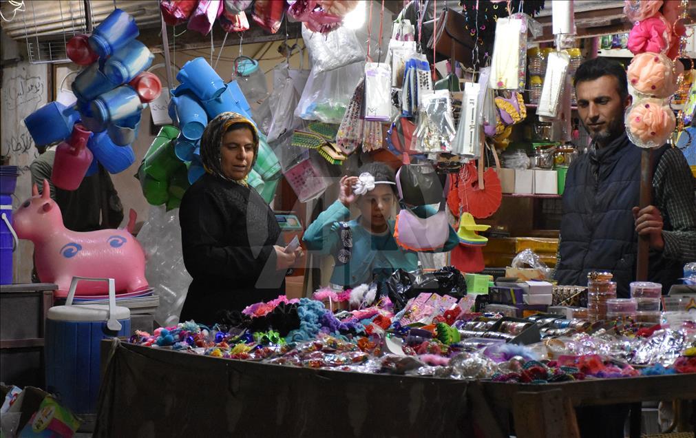 مع قرب انتهاء شهر رمضان الفضيل، بدأت استعدادات العائلات في محافظة إدلب (شمال غرب) لاستقبال عيد الفطر المبارك، إذ يقصدون الأسواق المنتعشة لشراء مستلزمات العيد.