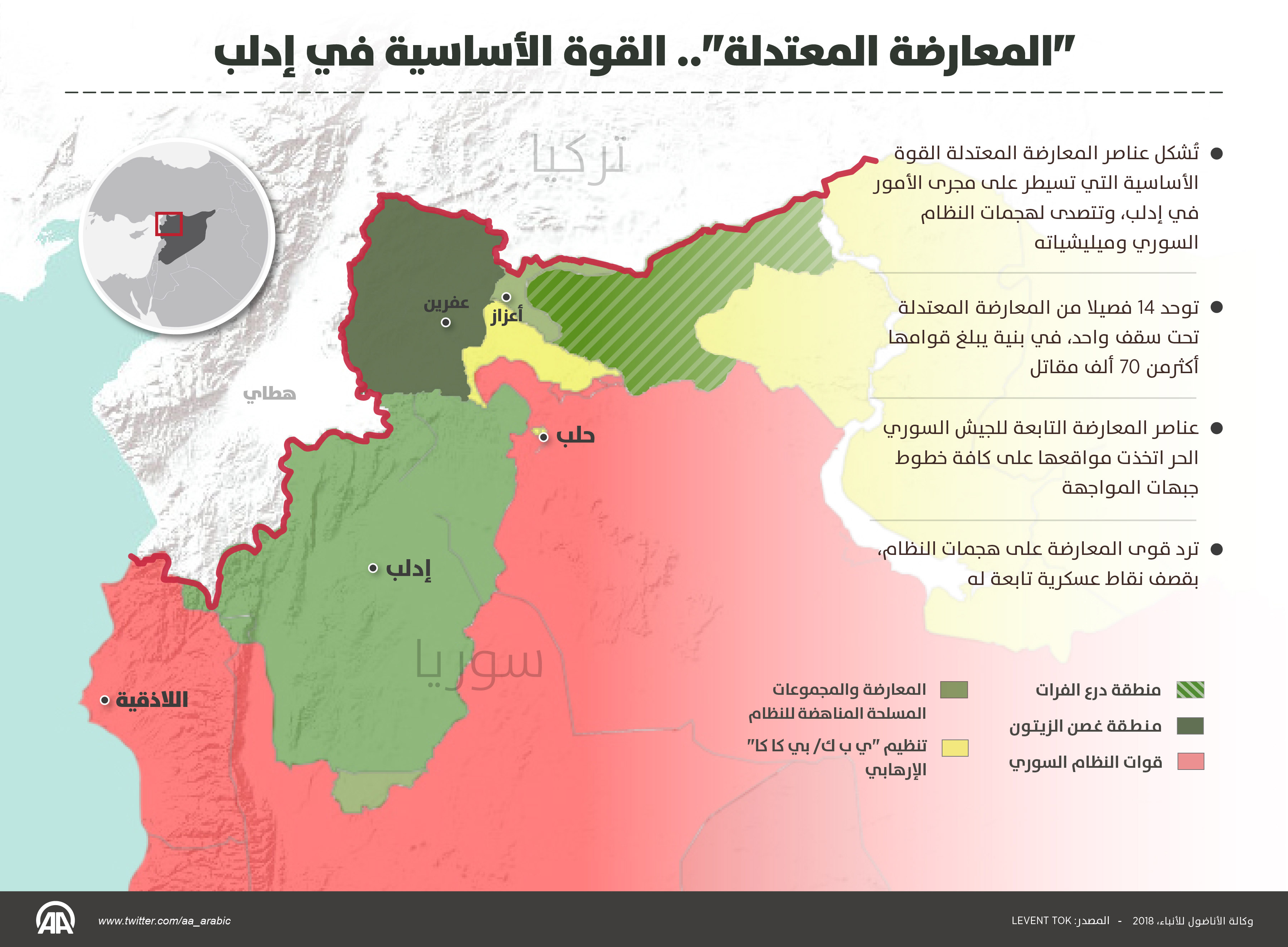 وعلى عكس المتداول إعلاميا، تُشكل عناصر المعارضة المعتدلة، القوة الأساسية التي تسيطر على مجرى الأمور في إدلب، وتتصدى لهجمات النظام السوري وميليشياته.