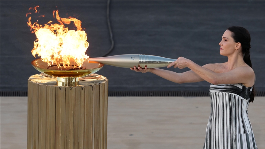 Chief of the Hellenic Olympic Committee, Spyros Kapralos, gave the flame to the chairman of Paris 2024, Tony Estanguet, and it will remain at the French Embassy overnight before it embarks for the port of Marseille in southern France.