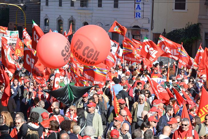 The rally was called by Italy's largest, former communist trade union federation, whose fiery leader Susanna Camusso poured scorn on Democratic Party Premier Renzi's claim that abolishing Article 18 of the existing labour legislation protecting workers against unfair dismissal would help to ease Italy's ballooning unemployment rate.