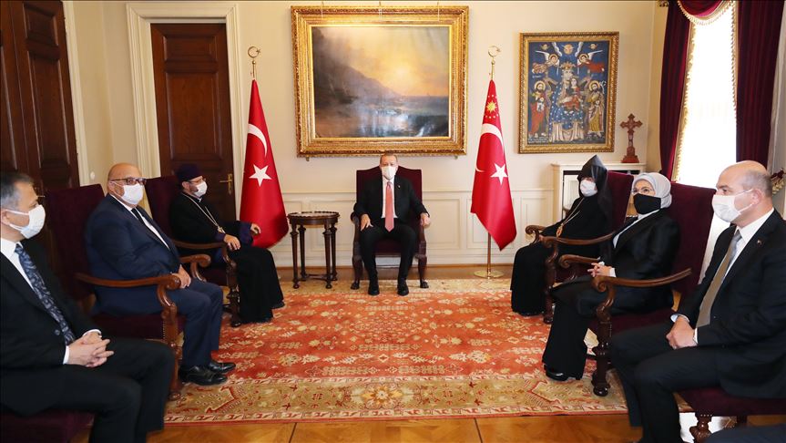 Presiden Turki Recep Tayyip Erdogan pada Kamis bertemu dengan Sahak Mashalian, kepala Patriarkat Armenia di Turki.