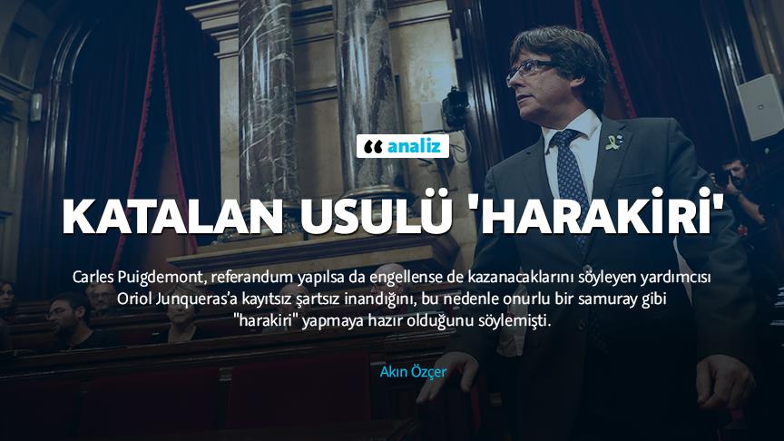 İspanya’nın büyük gazetelerinden El Mundo ayrılıkçı Katalanların anayasaya aykırı 1 Ekim referandumu arifesinde David Torres’in imzasıyla “Harakiri a la Catalana” (Katalan usulü harakiri) başlıklı bir analiz yayımlamıştı. Torres bu analizinde, Generalitat (özerk hükümet) Başkanı Carles Puigdemont’un, referandum yapılsa da engellense de kazanacaklarını söyleyen yardımcısı ve tarihi Katalunya Cumhuriyetçi Solu’nun (Esquerra Republicana de Catalunya-ERC) lideri Oriol Junqueras’a kayıtsız şartsız inandığını, bu nedenle onurlu bir samuray gibi “harakiri” yapmaya hazır olduğunu yazmıştı.