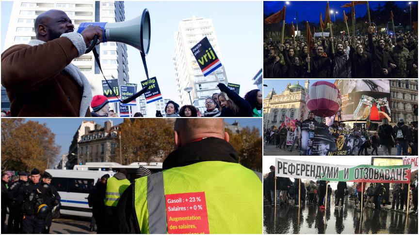 Avrupa'da hafta sonu yapılan gösterilerde sokağa çıkan halk, zamlar, hükümet politikaları, yolsuzluk ve ırkçılığı protesto ederken, Fransa'daki yüz binlerce kişinin katıldığı eylemlerde 1 kişi öldü, 227 kişi de yaralandı.