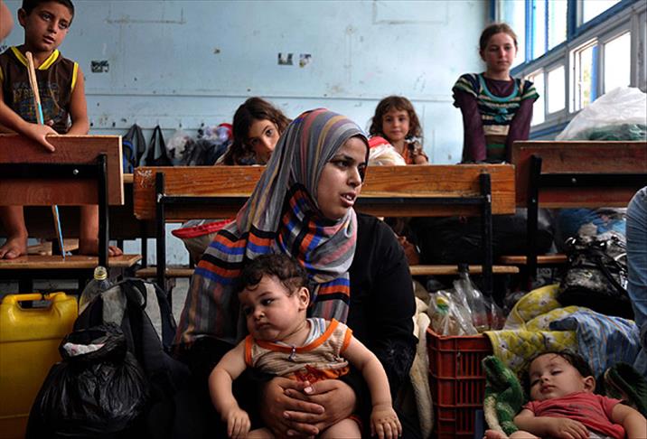 Evlerinin bombalanacağı korkusu yaşayan binlerce Gazzeli, aileleriyle BM Filistinli Mültecilere Yardım Kuruluşu (UNRWA) okullarına sığındı.