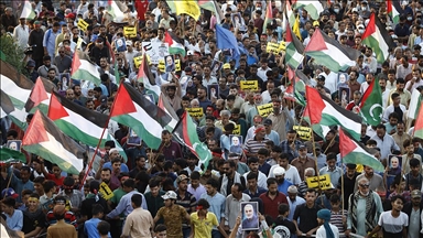 Gazze'deki BM Filistinli Mültecilere Yardım Kuruluşu (UNRWA) merkezi önünde "İnsanlık mezarlığı" sloganıyla düzenlenen gösteriye, Filistinli çocukların yanı sıra siyasi şahsiyetler de katıldı. Kampta yaşanan insani dramı protesto eden dövizler taşıyan göstericiler, "Bugün Yermuk, yarın neresi?" sloganları attı.