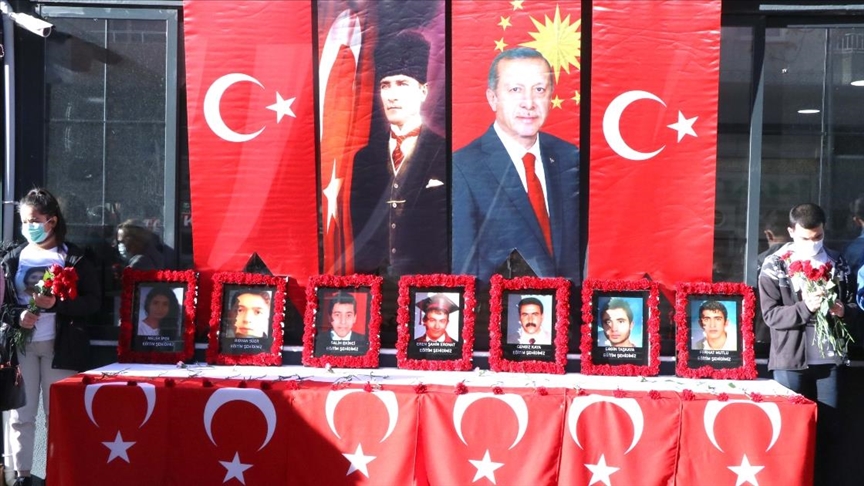 Şehit aileleri ve saldırıdan yaralı kurtulanların da katıldığı törende Türk bayrağıyla süslenen ve şehitlerin fotoğraflarının bulunduğu masaya karanfil bırakıldı, duygulu anlar yaşandı.