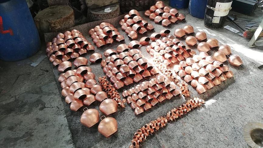 Manisa'nın Demirci ilçesinde el emeğiyle üretilen yılda 300 bin çan, çok sayıda ülkeye ihraç edilerek ilçe ekonomisine önemli katkı sağlanıyor.