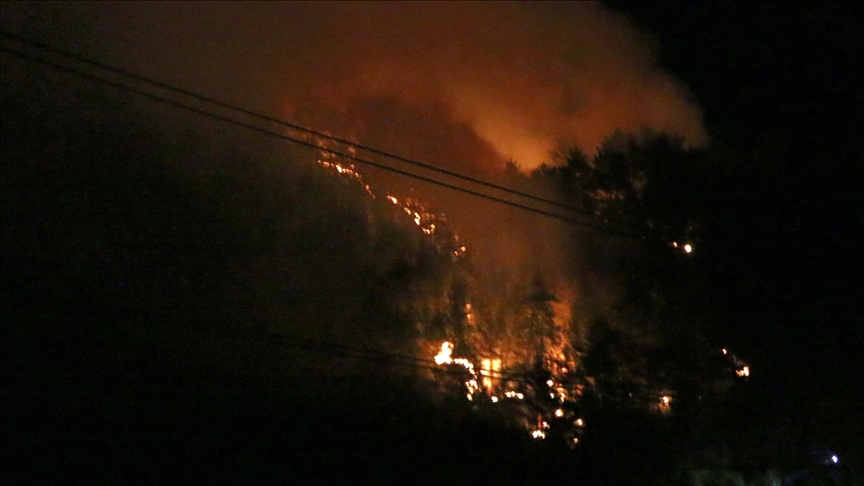 Ekiplerin, yangını kontrol altına almak için karadan müdahalesi sürüyor.