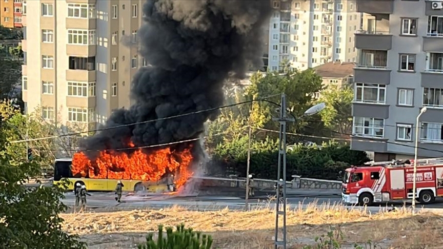 Ümraniye'de seyir halindeki İETT otobüsü yandı
