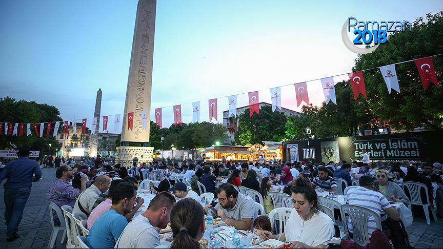 İstanbul'da Fatih Belediyesi'nce ramazan ayının ilk gününde Sultanahmet Meydanı'nda iftar programı düzenlendi.