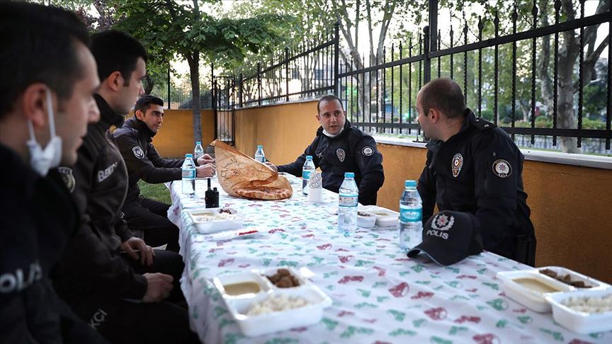 İstanbul'da devriye polisleri görevleri başında iftar yapıyor