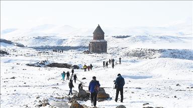 Bu arada Kars'a gelen ziyaretçiler, Ani Örenyeri'ni gezdikten sonra Çıldır Gölü'nün buzla kaplı zemininde atlı kızaklarla tur atmayı da ihmal etmiyor.