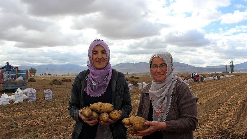 Niğde'de Patates Araştırma Enstitüsü ile Gıda, Tarım ve Hayvancılık İl Müdürlüğü iş birliğiyle uygulanan "Kadın Elinde Yerli Patates" projesi kapsamında eğitim alan kadın çiftçiler, toprakla buluşturdukları yerli tohumdan elde ettikleri patatesin hasadını yaptı.