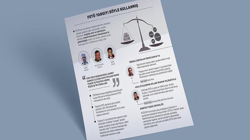 Fetullahçı Terör Örgütü'nün (FETÖ) ilk derece mahkemelerinin ardından yüksek yargıda nasıl yapılandığı, verilen kararların örgütün emir ve talimatıyla alındığı, önemli dosyaların Pensilvanya'ya götürüldüğü itirafçı üst düzey yüksek yargı mensuplarının itiraflarıyla ortaya çıktı.