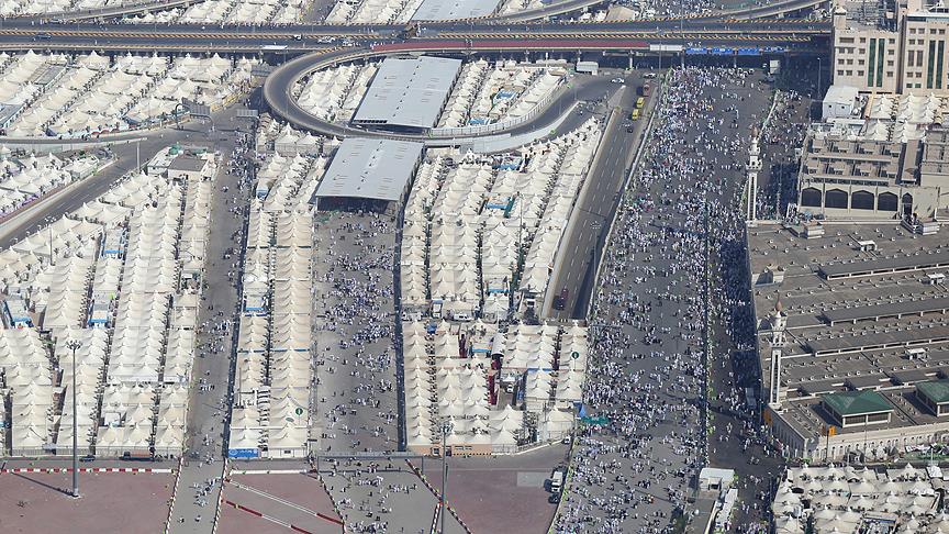 Bayramın ikinci gününde şeytan taşlamak için sabah saatlerinden itibaren yollara düşen hacıların Mina'daki konaklama çadırları ve şeytan taşlama alanı Anadolu Ajansı (AA) ekibi tarafından havadan görüntülendi.